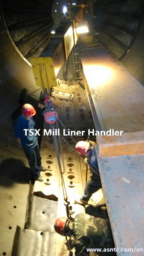 新一代螺栓沖是專門為拆裝大型磨機襯板而設計的,主要用于擊打襯板上螺栓,使其順利卸下,早在2012年我公司自主研發第一臺螺栓沖應用于磨機襯板的拆卸上取得成功。今天我們根據《人機工程學》標準設計的操作扶手和按鈕的位置符合中國人操作習慣,使用PLC控制螺栓沖可以直接操縱液壓支架吊伸縮,升降,使螺栓沖工作位置可調節,操作方便、性能穩定、省時省力。